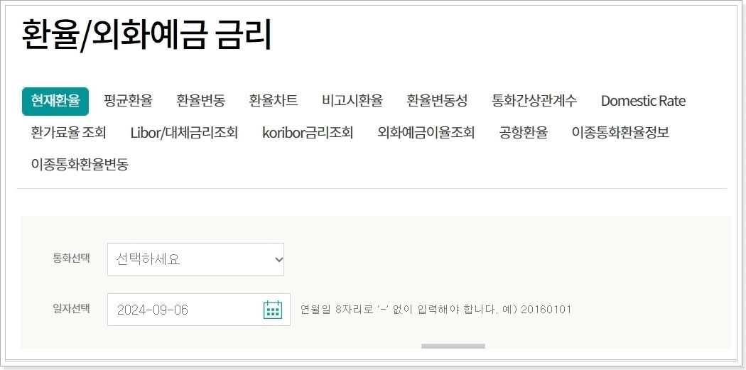 날짜별 환율조회는 어떻게 하나요?